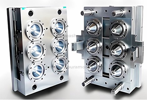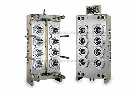 A PET jar mould is used in blow moulding machines to produce PET jars of various shapes and sizes from preforms.